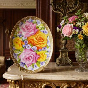Коллекционная декоративная фарфоровая тарелка, 22х17 см с розами в позолоте настенная, Limited Edition Congratulations Davenport Англия 2002