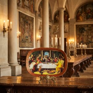 Коллекционная фарфоровая настенная тарелка Тайная Вечеря в декоративном орнаменте 23х16 см в кейсе Knigszelt Bayern Bradex Германия 1995