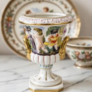 Винтажная ваза Capodimonte с херувимами, Италия, фарфор с позолотой, после реставрации