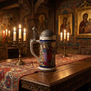 Коллекционная пивная кружка Царский двор Русские сказки фарфор олово 15 см Villeroy & Boch Германия 1989 г.