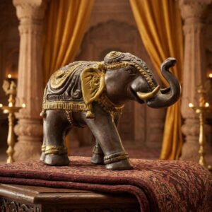 Антикварная бронзовая статуэтка “Королевский Слон с барельефным убранством” 22х14 см, Индия, 1982 год
