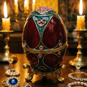 Шкатулка “Яйцо” в стиле Фаберже красно-зелёная с искусственными камнями, 6 см