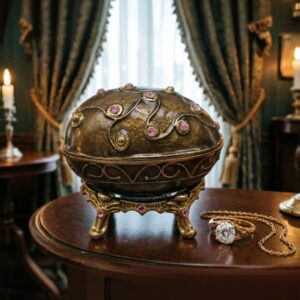 Шкатулка Яйцо в стиле Фаберже с розовыми камнями, металл, съёмная подставка.