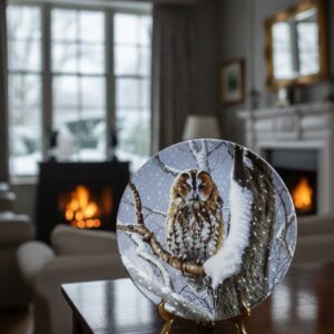 Коллекционная декоративная тарелка “I Spy – Woodland Winter” с изображением совы, фарфор, деколь, диаметр 20,5 см, 1992 год, Англия, Wedgwood, Сертификат.