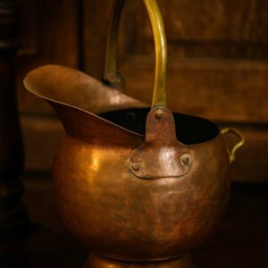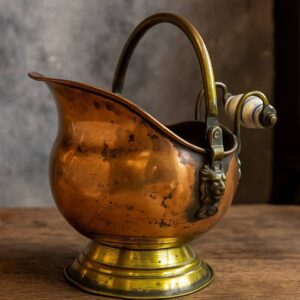 Винтажный зольник из меди и латуни с резной ручкой антикварный стиль для уютного камина