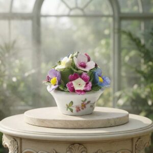 Фарфоровая миниатюра Цветочная корзина ручной лепки 6х7 см, Англия, 1988 год, Aynsley