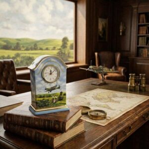 Каминные фарфоровые часы с авиационным сюжетом Heroes of the Sky деколь золочение 21х13.5х7 см Bradford Exchange США 1995 г.