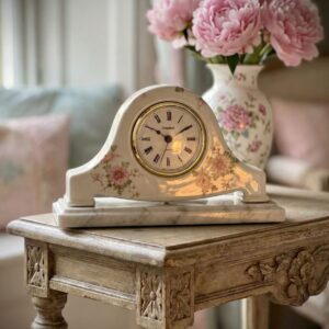 Каминные фарфоровые часы с цветочным декором деколь классическая форма 18х10х7.4 см Grayshott Pottery Англия 1975 г.