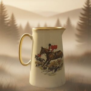 Антикварный большой керамический кувшин с позолотой “Охота на лисицу”, Англия