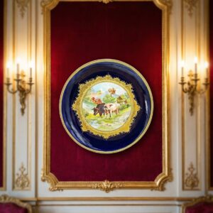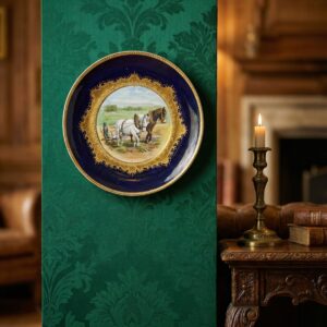 Декоративная тарелка “Полевой труд” с кобальтом и позолотой фарфор Англия 1950-1960-е гг.