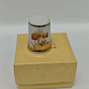 Коллекционный винтажный напёрсток Suizan Iris “Ирисы”, Япония 1980-е, эксклюзив для Thimble Collectors Club, фарфор в коробке