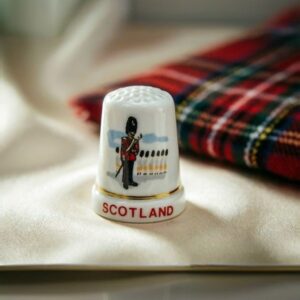 Коллекционный сувенирный напёрсток Scotland “Гвардеец”, фарфор с деколью, в оригинальной коробке-футляре, Шотландия