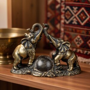 Статуэтка “Два слона с поднятыми хоботами”, Полистоун, символ удачи, Индия, 14 см