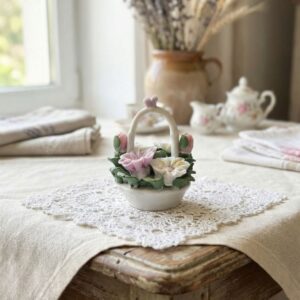 Миниатюрная цветочная корзинка из бисквитного фарфора с ручной росписью, 8х5.5 см, Германия, 1970-е гг.