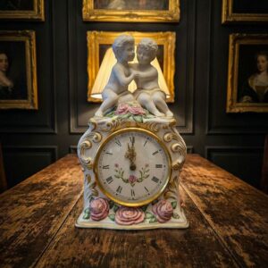 Каминные часы фарфоровые с жанровой сценой дети и цветочный декор позолота 18х11х7 см The Franklin Mint США 1987 год