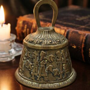 Латунный колокольчик с рельефными сценами, Винтажный декор для интерьера, 8 см, (без язычка)