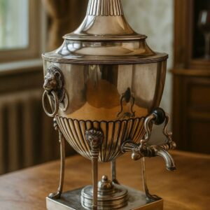Редкий элегантный самовар с изысканными элементами и деталями в виде львов, выполненный из меди и покрытый серебрением ваш ключ к настоящему чайному наслаждению