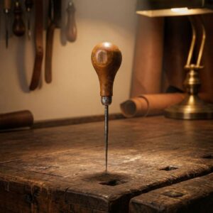 Винтажное сапожное шило с точёной деревянной рукоятью, металл и дерево, 11,5 см, 1960 год, Германия