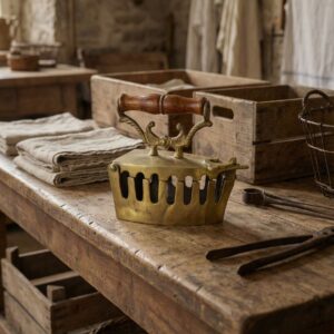Старинный угольный утюг с деревянной ручкой
