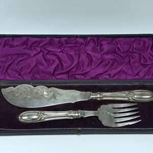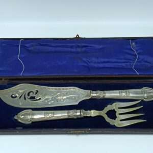Сервировочный набор для рыбы в кейсе. Серебрение, Англия 1930 гг.