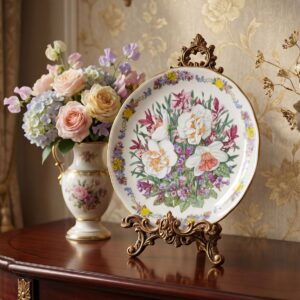 Декоративная настенная тарелка с цветочным букетом нарциссов и садовых цветов, фарфор, деколь, золочение диаметр 22 см Royal Grafton Великобритания 1992 год