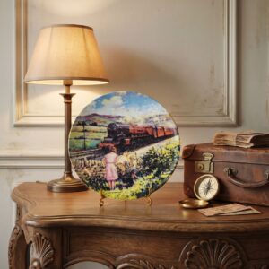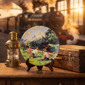 Декоративная настенная тарелка с паровозом Flying Scotsman сюжет с детьми фарфор деколь диаметр 19 см The Bradford Exchange США 1991 год