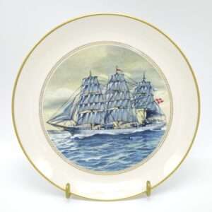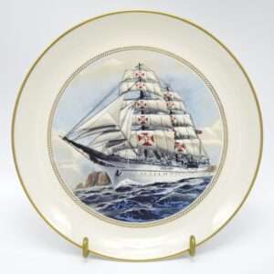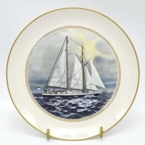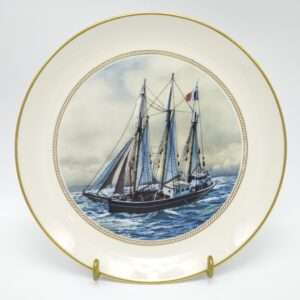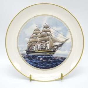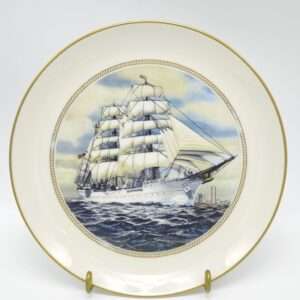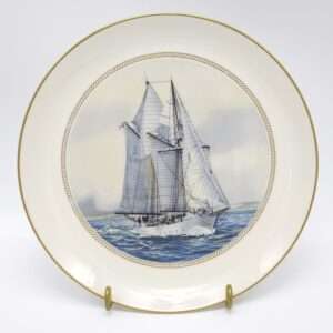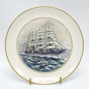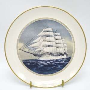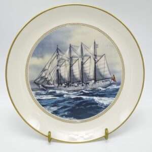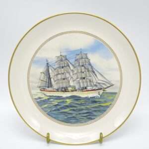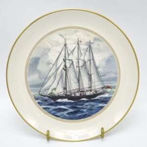 Тарелка винтажная декоративная настенная «Парусники» из коллекции «Эпоха Великих географических открытия». Фарфор, деколь, золочение. США, Danbury Mint.
