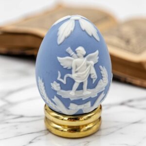 Коллекционное пасхальное яйцо Franklin Mint в стиле “Веджвуд” Купидон, бисквитный фарфор с рельефом, США, 6 см