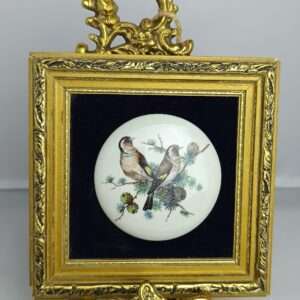 Настенная миниатюра, плакетка «Птицы на кедровой ветке». Дерево, фарфор, бархат. Англия