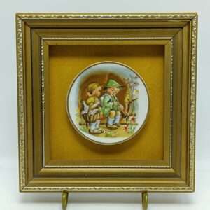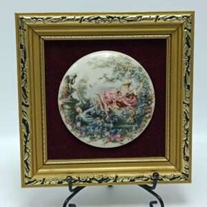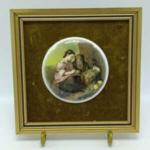 Винтажная декоративная плакетка с изображением влюбленных. Фарфор. Деревянная рама
