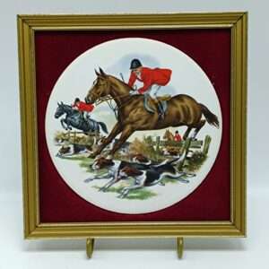 Винтажная настенная плакетка/панно «Охотничья сцена». Фарфор. Англия 1980 года
