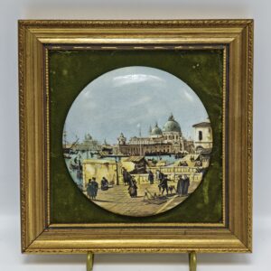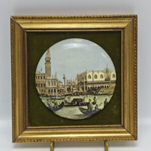 Винтажная декоративная миниатюра с изображением природы. Подвесная. Фарфор. Деревянная рама