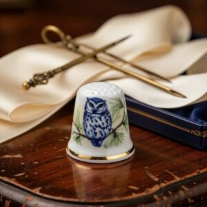 Винтажный напёрсток Сова , Англия 1980-х, Rockingham Wisdom, Fine Bone China, коллекционная редкость