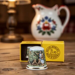 Винтажный напёрсток “Сбор урожая”, Австрия, Wilhelmsburg Harvest Maiden, пасторальная сцена, раритет