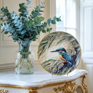 Декоративная настенная тарелка с зимородком на ветке фарфор деколь позолота 23 см Wedgwood Англия 1991