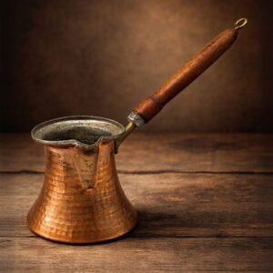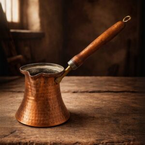 Турка для кофе медная мини с деревянной ручкой, Джезва из меди 125г, Винтажная посуда