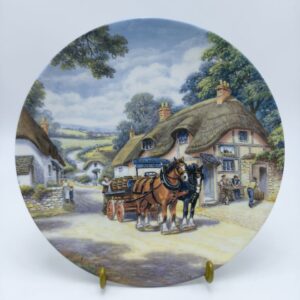 Декоративная фарфоровая тарелка ручной работы «Сельский пейзаж с лошадьми и пивной повозкой» для коллекционного интерьера