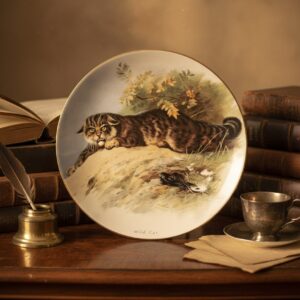 Винтажная коллекционная тарелка Royal Worcester Дикая кошка (1918) редкое издание из серии Млекопитающие Торбурна , фарфор с деколью и позолотой, 1991 г., лимитированная серия 15000 экз.