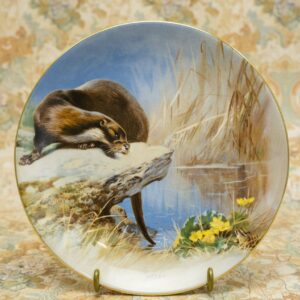 Винтажная коллекционная тарелка Royal Worcester Выдра (1918) редкое издание из серии Млекопитающие Торбурна , фарфор с деколью и позолотой, 1991 г., лимитированная серия 15000 экз.