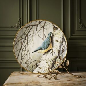 Декоративная настенная тарелка с изображением поползня на берёзе, фарфор, деколь, позолота, диаметр 23 см, Wedgwood Англия 1989