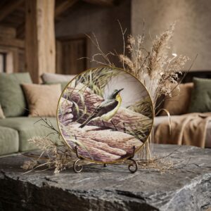 Декоративная настенная тарелка с изображением каменки на древесине, фарфор, деколь, позолота, диаметр 23 см, Wedgwood Англия 1989