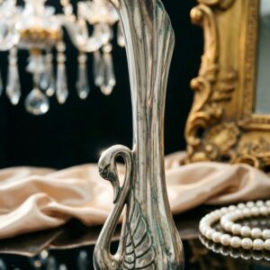 Винтажная посеребренная вазочка “Лебедь”, изящный декор с патиной, редкий раритет
