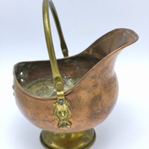 Винтажный медный зольник ручной работы, Англия антикварный каминный аксессуар с латунными деталями, патиной и гербом эпохи викторианства
