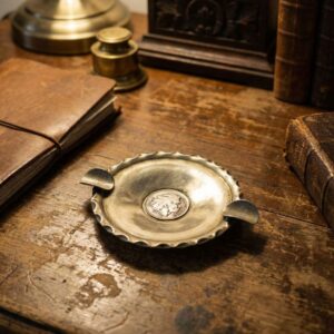 Миниатюрная пепельница посеребренная с монетой Diez Centavos 7х6 см Колумбия 1960-е годы