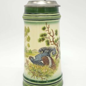 Коллекционная пивная кружка с крышкой “Птицы. Охота”. Ручная работа. Керамика, деколь, олово, Германия, 1960-1980 гг.