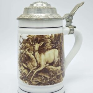 Коллекционная пивная кружка с крышкой с изображением Оленя. Фарфор. ГДР 1970 гг. Высота 18 см