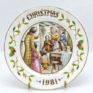 Винтажная рождественская тарелка “Семья Крэтчит 1981” из коллекционной серии. Фарфор. Позолота. Aynsley, Англия