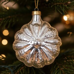 Стеклянная ёлочная игрушка шар-фигурный, 8х5,5 см, серебристая, новогодний декор