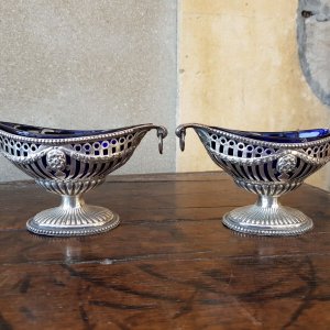 Старинная Пара Солонок с ложками Стерлинг. Серебро