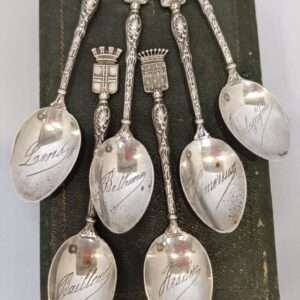 Антикварные серебряные коллекционные ложечки в кейсе. Франция 1900 гг.